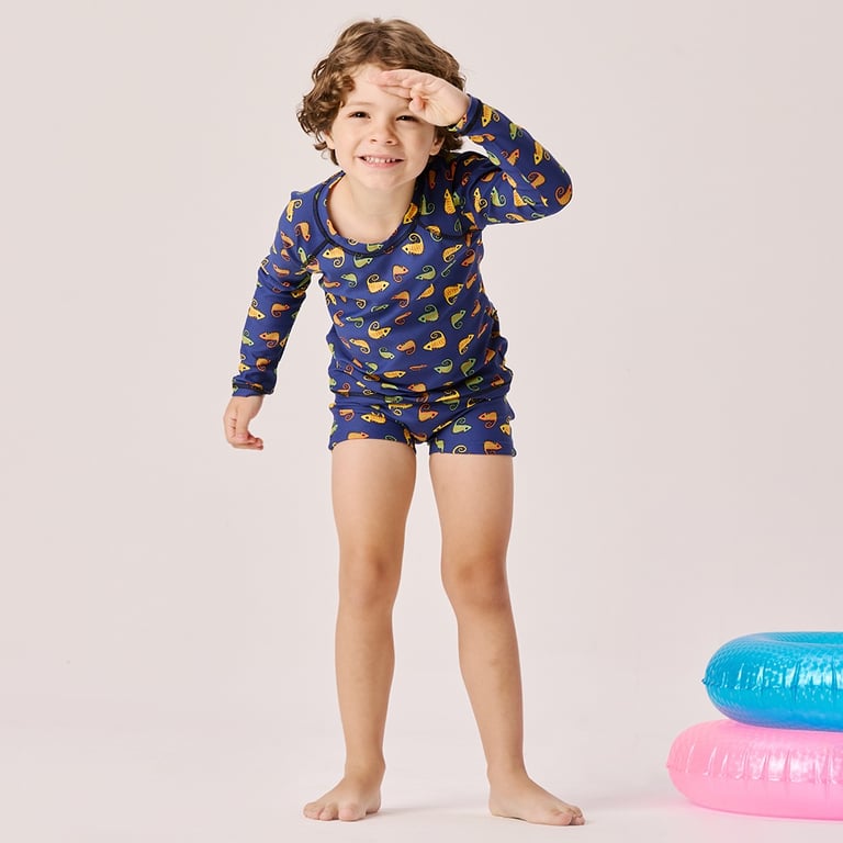 Coleção de Linha Praia desenvolvida para o Verão 25 da bb básico. Com peças confortáveis, estampadas, divertidas e proteção UV para os pequenos.